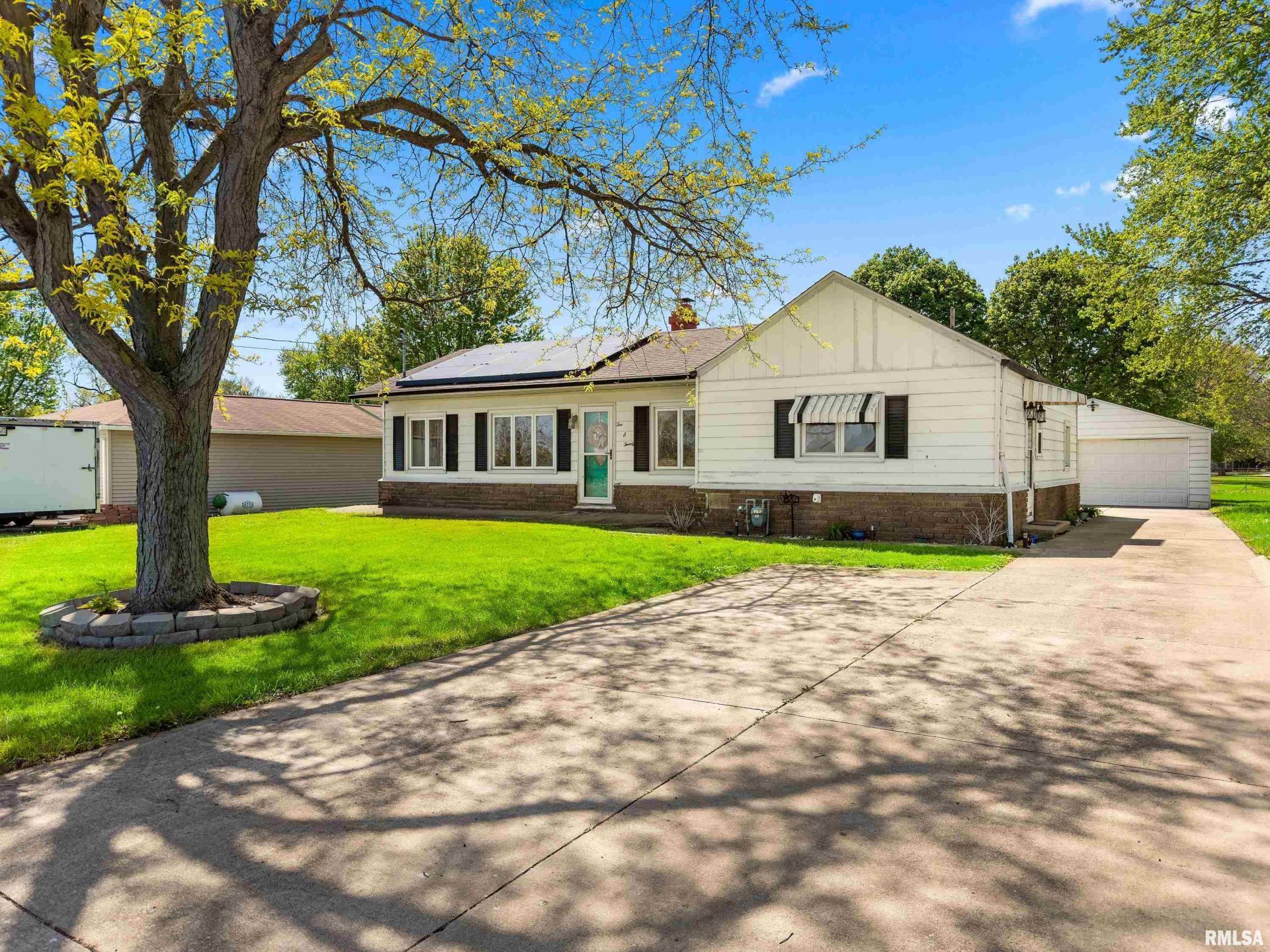Welcome to this charming ranch home perfectly situated on the edge of town, offering the ideal blend of privacy and convenience! This 2-bedroom, 1-bath home features an oversized 1-car garage and a HUGE private backyard?perfect for relaxing, entertaining, or enjoying the outdoors. Inside, youll find a beautifully remodeled kitchen and updated bathroom, giving the home a fresh, modern feel. Major mechanical updates provide peace of mind, including a new AC unit (2025) and a radon mitigation system installed in 2017. The garage door was replaced in 2012. Energy-efficient leased solar panels help keep utility costs down while adding long-term value. Whether you're a first-time buyer, downsizing, or looking for a move-in ready home with space to spread out, this one checks all the boxes. Dont miss your chance to own this well-maintained gem with a quiet, edge-of-town setting and a backyard that truly stands out!