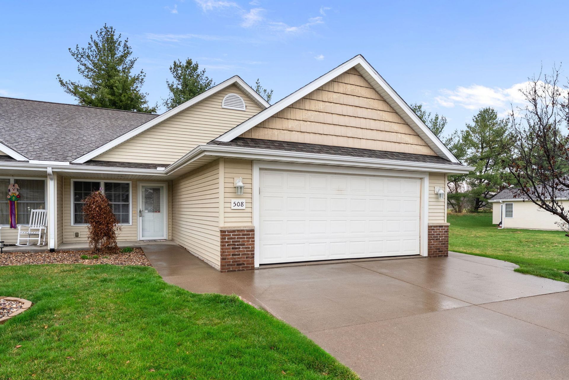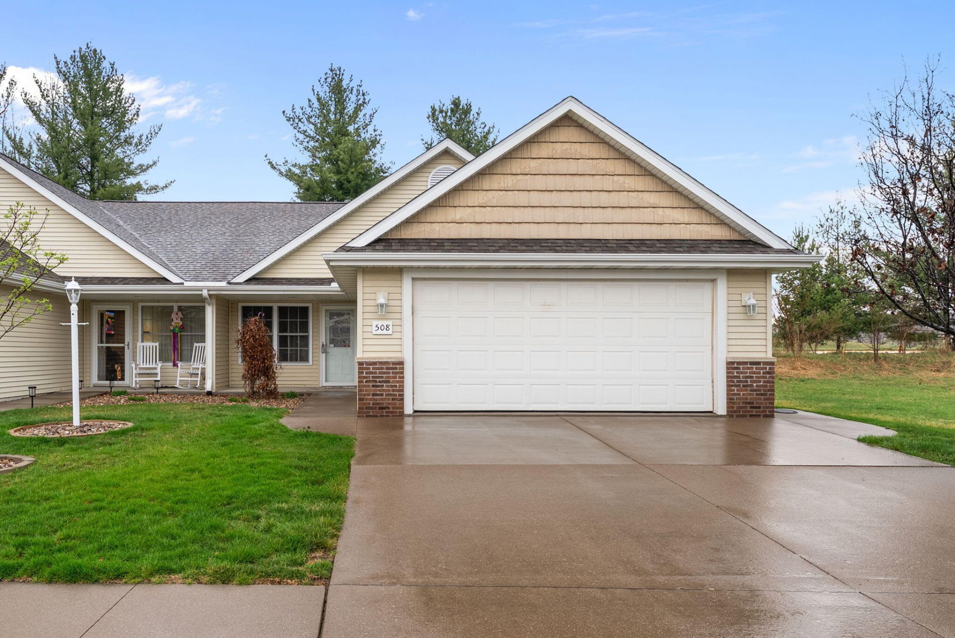 Another great Aspen Trail condo! Nice flat driveway to enter this zero-step entry property! Vaulted ceilings, open floor plan, and screened porch make this a standout condo. The kitchen features maple cabinetry, full appliance package and a convenient rolling island to use as needed. Enjoy the beautiful sun room with all the natural light you'd like! Good sized bedrooms and two baths. Plenty of closet space! The lower level is not finished but includes an egress window and a rough in for a bathroom. The tub/shower unit is already there. Nice opportunity to live in this friendly community at an affordable price! Estate property, being sold as is.